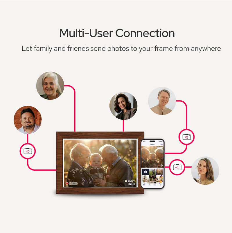 10.1 Inch Digital Picture Frame - 1280 * 800 HD WiFi Enabled with Load from Phone Capability, 32GB Memory Touch Screen Photo Display Brown