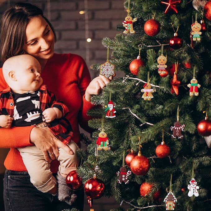 - CHRISTMAS ORNAMENT SET: Contains 12 cute little cookie men, Santa, snowman, snowflakes and candy cookie house, each with a golden string for easy hanging. Choose from a variety of cute and fun patterns to add a Christmas spirit to your home.