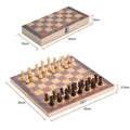 3 IN 1 Wooden Chess Set Folding Chessboard Wood Pieces Draughts Backgammon Toy