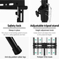 Looking for a safe and secure way to mount your television in the living room, office or classroom? Look no further than an Artiss TV Tripod Stand. The stand features a high-quality steel frame with a black powder-coated finish atop an adjustable tripod for an unobtrusive, minimalist look. A secure screw locking system and strong anti-slip padded rubber legs ensure the TV stays perfectly in place. Adjust the viewing height and angle with the height adjustable knob, 10-degree tilting and 360-degree swivel. The flexible VESA mounting system ensures the stand will hold a 32" to 72" TV. The stand is easy to assemble and can be easily folded away for storage when no longer in use. Enjoy the flexibility, style and security of an Artiss TV Tripod Stand in your home, rental or place of work. Get yours today.