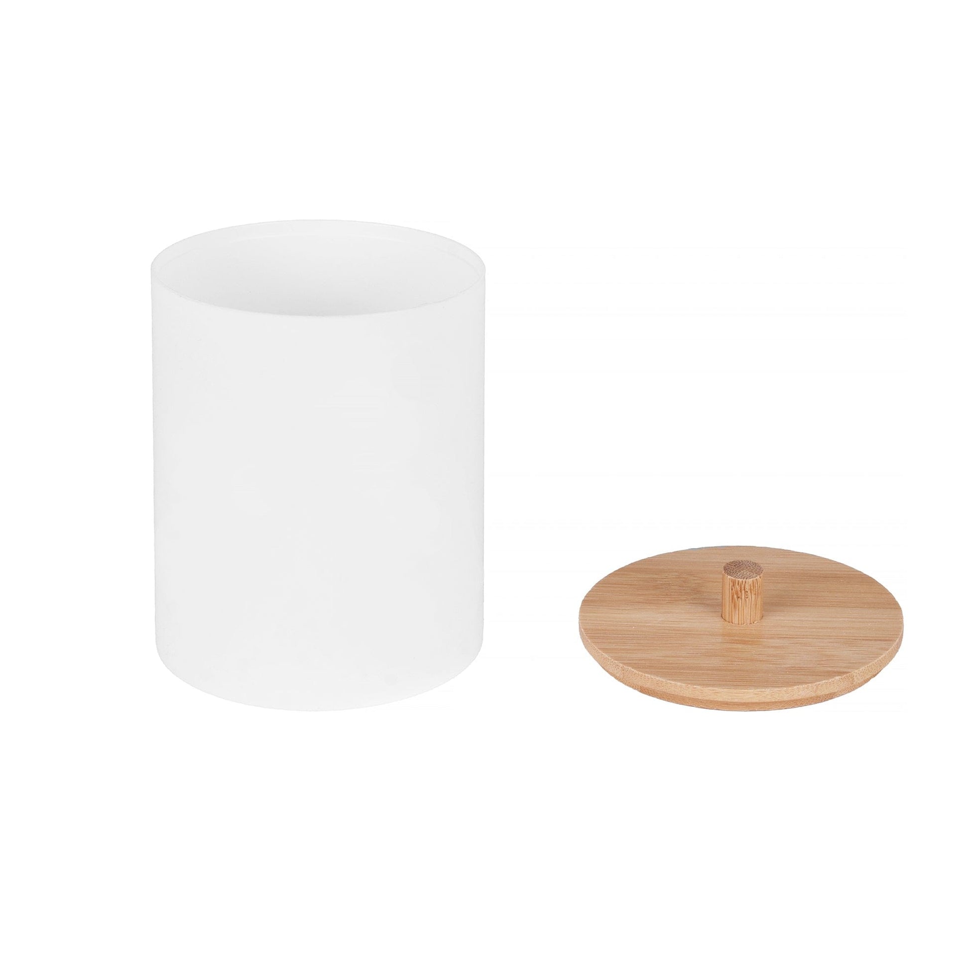 Ideal organiser for small items, effortlessly facilitating storage and retrieval of essentials like cotton balls, swabs, floss picks, tampons, bath salts, hair ties, makeup brushes, beauty blenders, facial brushes, and a myriad of other diminutive articles. Our canister design is BPA free, durable and easy to clean.