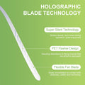 - Holographic blades diffuse light, simulating a threat to flying insects