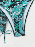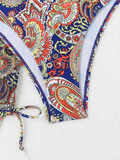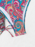 Cashew flower print lace-up swimsuit bikini sexy two-piece swimsuit four-piece set