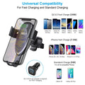 The fast wireless car charger, with soft silicone on the phone clamp arm and air vent mount, will hold your phone securely and prevent it from falling off. Besides, the hook on the end of the air vent mount makes the car charger fixed more securely on your car. And these smart design won't scratch your phone or damage your car.