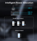 - USB-C1+USB-C2+USB-A: 30W+30W+18W (78W Max)