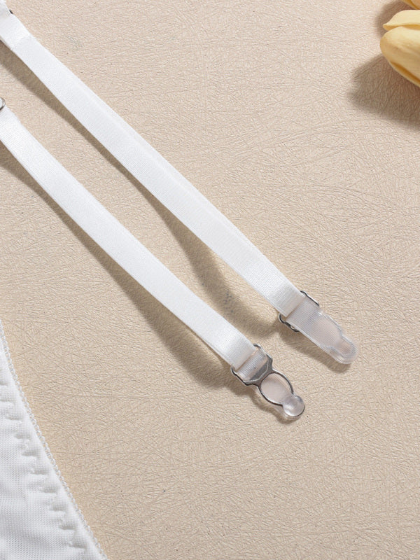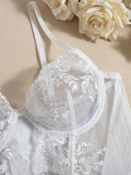 Embroidered sexy lingerie with fishbone corset three-piece set