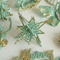Green Glitter 3D Star Ornament - Elevate your holiday decorations with this beautiful 3D star ornament. Covered in shimmering green glitter with gold accents, it adds a festive touch to Christmas trees, garlands, or windows.