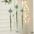 Green Glitter Icicle Ornaments - Elevate your holiday decorations with this elegant set of icicle ornaments. Each piece features shimmering green glitter, gold accents, and a star-shaped top, making it a perfect addition to Christmas trees or festive garlands.