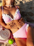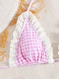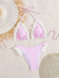 Lace plaid halterneck bikini ruffled holiday split swimsuit two-piece set