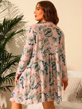 Large size printed mesh three-piece bikini swimsuit