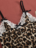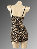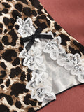 Leopard print sexy nightdress with slit legs and bowknot on chest pajamas sexy lingerie