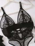 Lingerie sexy polka dot mesh lace splicing low-cut no-wire sexy jumpsuit set