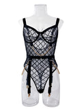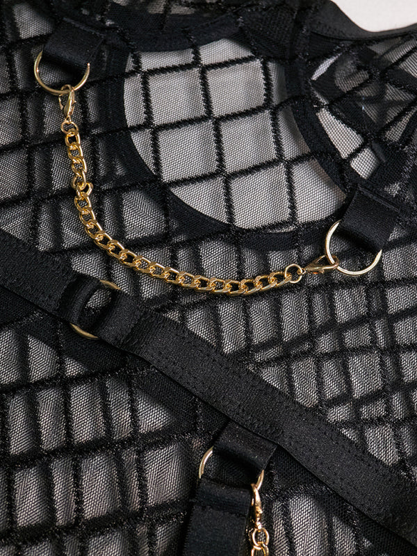Mesh Fishnet Lace Lingerie with Chains Detailing