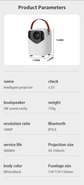 Mini Portable HD Projector - Enjoy a cinematic experience anytime, anywhere with this compact HD projector. Featuring a giant screen display capability, gamut compensation, and flexible positioning, this projector is perfect for movie nights, presentations, and gaming. Its portable design and convenient carry handle make it easy to transport, whether you're setting up in your living room or taking it to a friend's house.