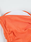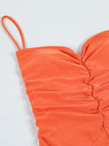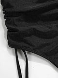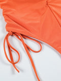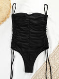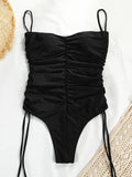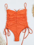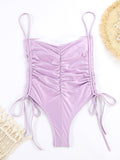 New drawstring one-piece swimsuit solid color pleated sexy suspender bikini