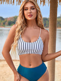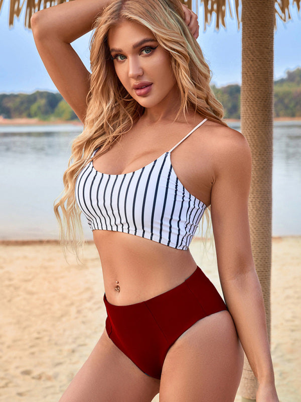New high waist split bikini skinny swimsuit striped beach vacation bikini