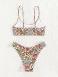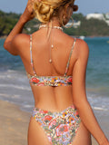 New holiday retro printed tube top high waist bikini