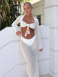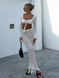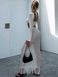 New navel-baring bikini vacation tassel sexy see-through hollow sweater suit