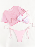 New Sexy Bikini Swimsuit Pink Cute Three-piece Swimsuit