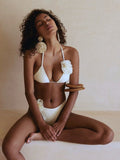 New sexy three-dimensional flower bikini suit triangle bag lace-up hot girl split swimsuit