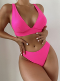 New solid color underwire push up high waist triangle cup beach bikini swimsuit