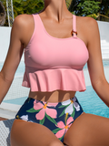 New split swimsuit high waist bikini ruffle leaf print multicolor swimsuit