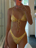 New style bikini triangle bag split swimsuit with small floral laces