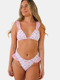 New style two-piece bikini ruffled lace bow girl floral strap swimsuit