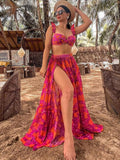 New stylish and sexy printed holiday sleeveless three-piece bikini set (top + pants + skirt)