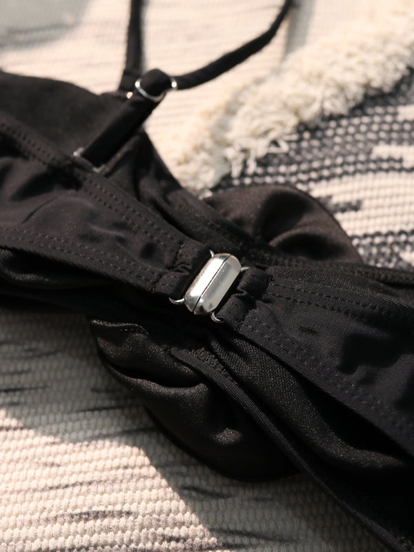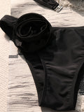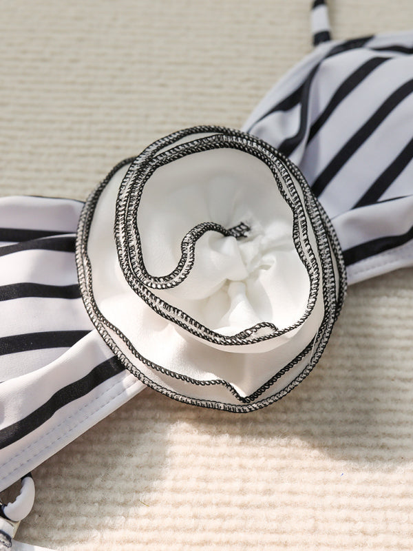 New three-dimensional flower tube top high waist small bikini split swimsuit