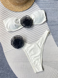 New tube top sexy three-dimensional flower split women's swimsuit bikini