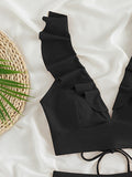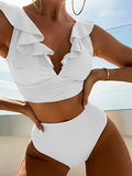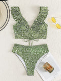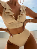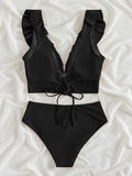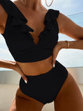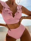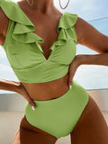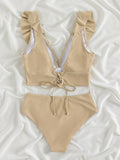 New women's lace V-neck ruffled high-waist split swimsuit bikini