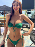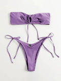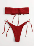 New women's one-piece swimsuit low waist strapless solid color tube top sexy bikini