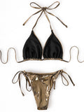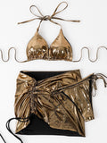 New women's three-piece solid color bronzing glossy sexy lace-up bikini skirt bikini