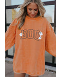 Orange Embroidered BOO Ghost Corded Halloween Sweatshirt - L