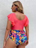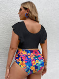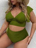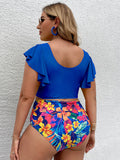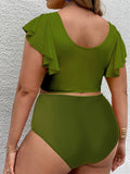 Plus Size Women-Falbala V-Neck Bikini Set