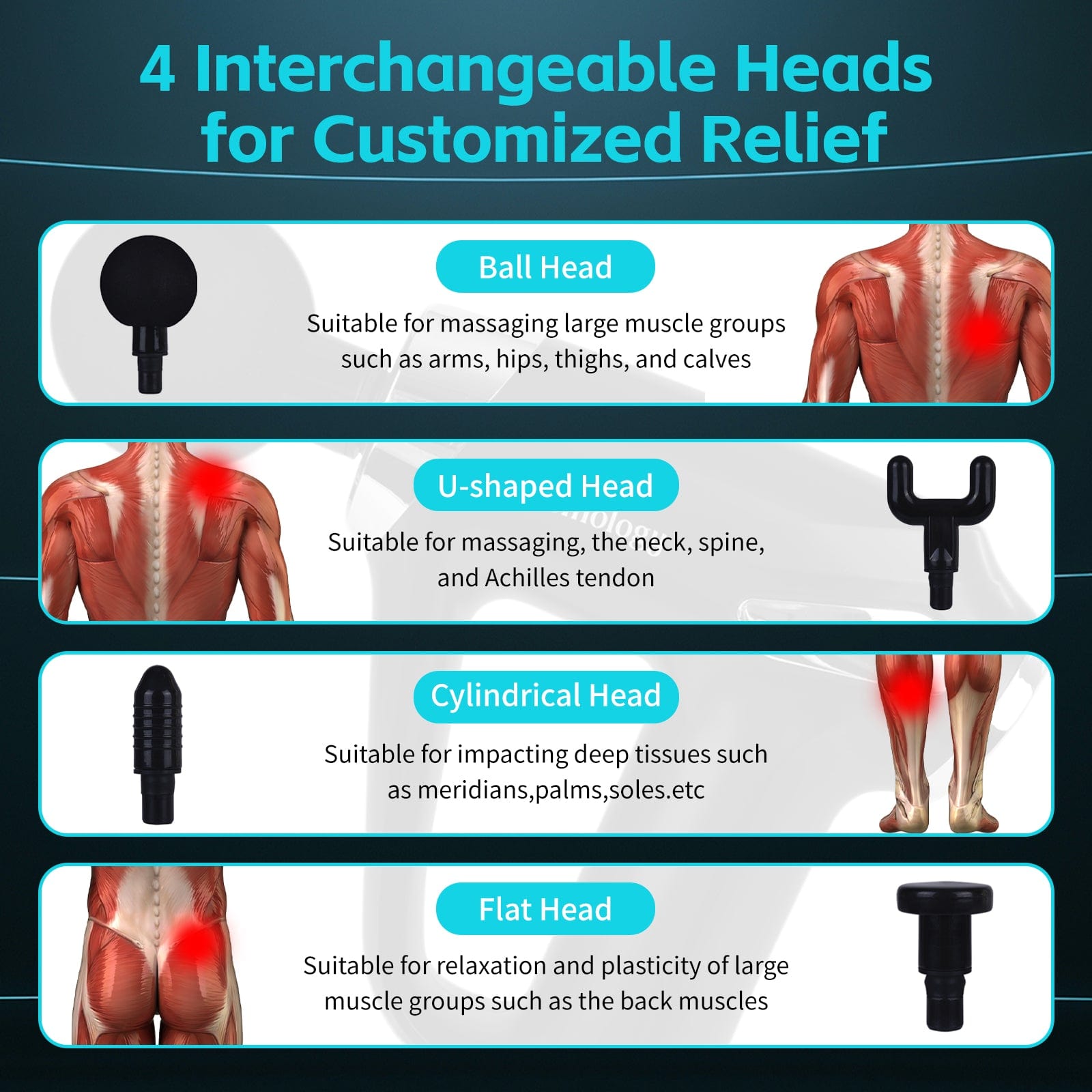 - 4 Massage Heads: U-shape / Spherical / Conical / Flat