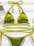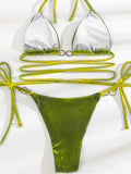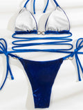 Sexy bikini with long strappy waist and metal hoop velvet fabric