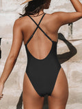 Sexy deep V hollow out beautiful back sling bikini high waist slimming bikini