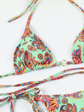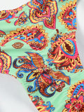 Sexy printed backless one-piece swimsuit women's three-ring bikini