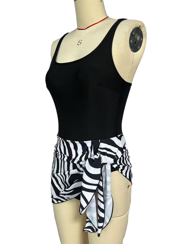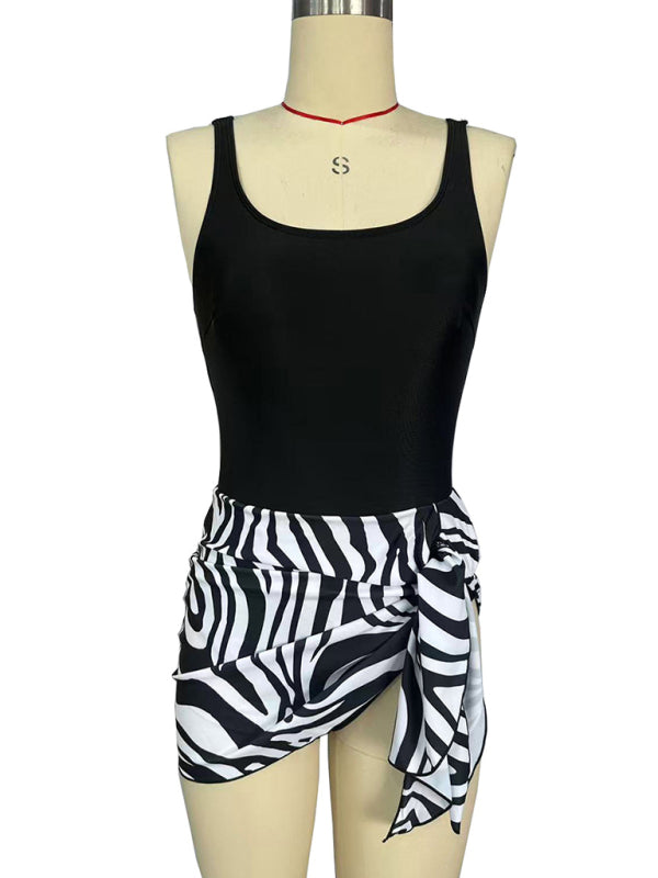 Sexy slim skirt style zebra print one-piece swimsuit bikini