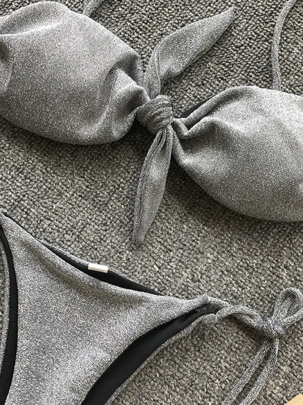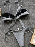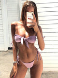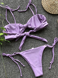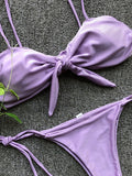 Sexy three-point purple bikini women's strappy push-up swimsuit