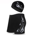 Silver Men's Athletic Swim Trunks and Cap Set with Dynamic Graphic Print(4XL)
