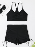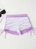Solid color bikini sexy small chest gathered high waist cover belly split swimsuit