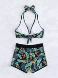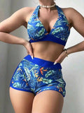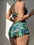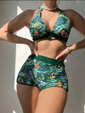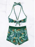Splicing print halter neck split bikini bikini sexy high waist swimsuit