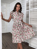 Summer European and American retro skirt print mid-length white dress