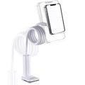 - Experience hands-free comfort with the Urbanoki Gooseneck Phone Holder a 360 adjustable, flexible clamp mount ideal for use in bed, at your desk, or while traveling. Designed for versatility and convenience, this long arm phone stand allows you to comfortably position your device for reading, filming, video calls, or streaming.