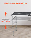 This beer pong tailgate table features two adjustable height settings of 20.5 inches and 28 inches. You can easily customize the height for optimal comfort and gameplay, ensuring a comfortable and enjoyable gameplay experience for players.
