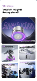 Keep your phone secure and accessible with this Vacuum Suction Desktop Phone Holder. Designed for versatility, this foldable phone mount features a powerful vacuum suction base that adheres to both desktops and car dashboards, making it perfect for hands-free navigation, video calls, or media viewing. The built-in magnetic attachment ensures your phone stays in place, while the 360° rotation allows for flexible viewing angles.