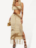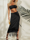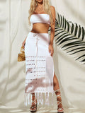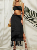 Women's bikini cover-up top wrap chest dress two-piece tie-up tassel beach sunscreen dress